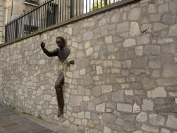 Questa scultura, di Jean Marais (1989), evoca un personaggio di Marcel Aymé, il Passe-Muraille. Si trova in place Marcel-Aymé, nel 18e.